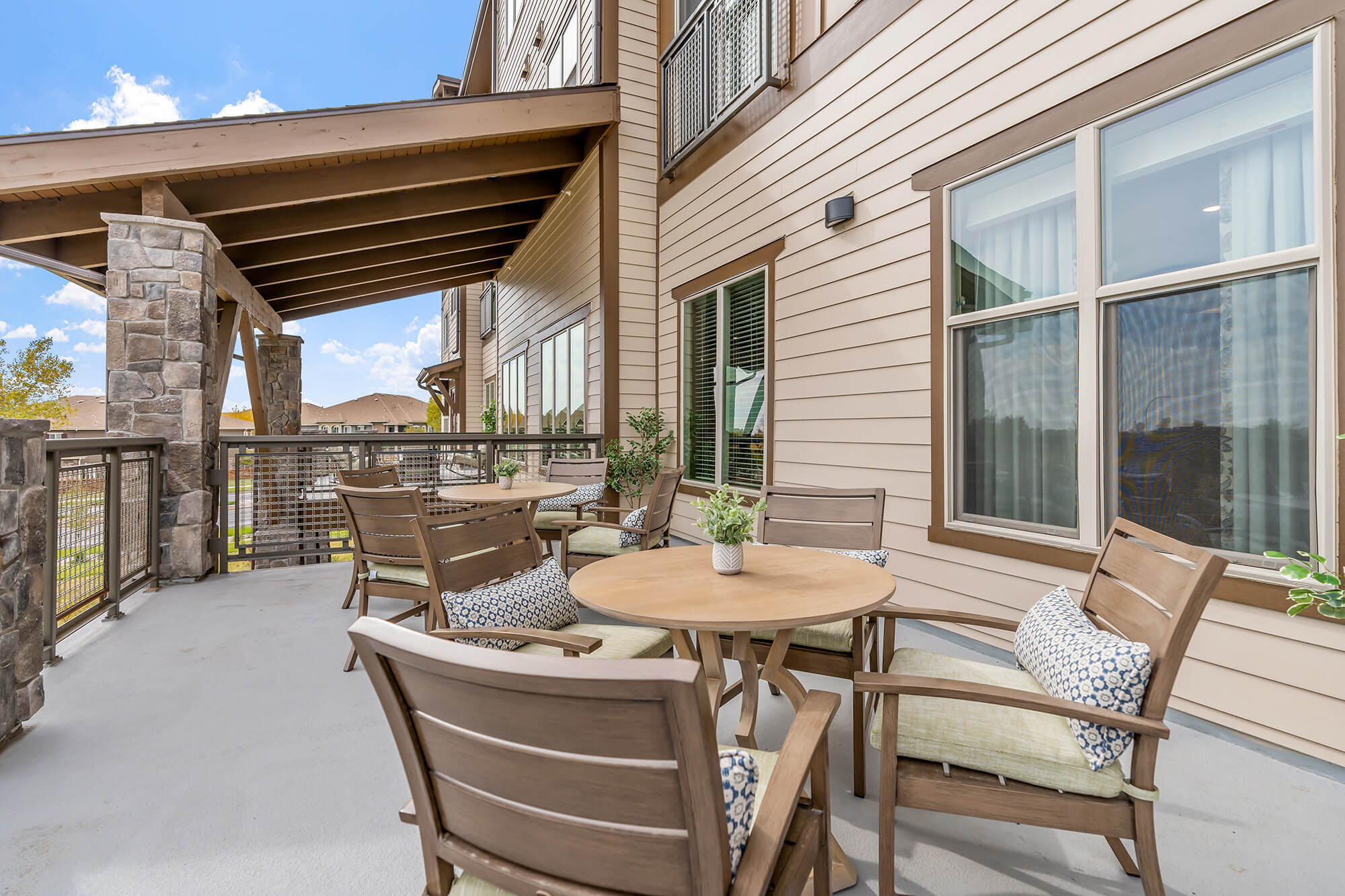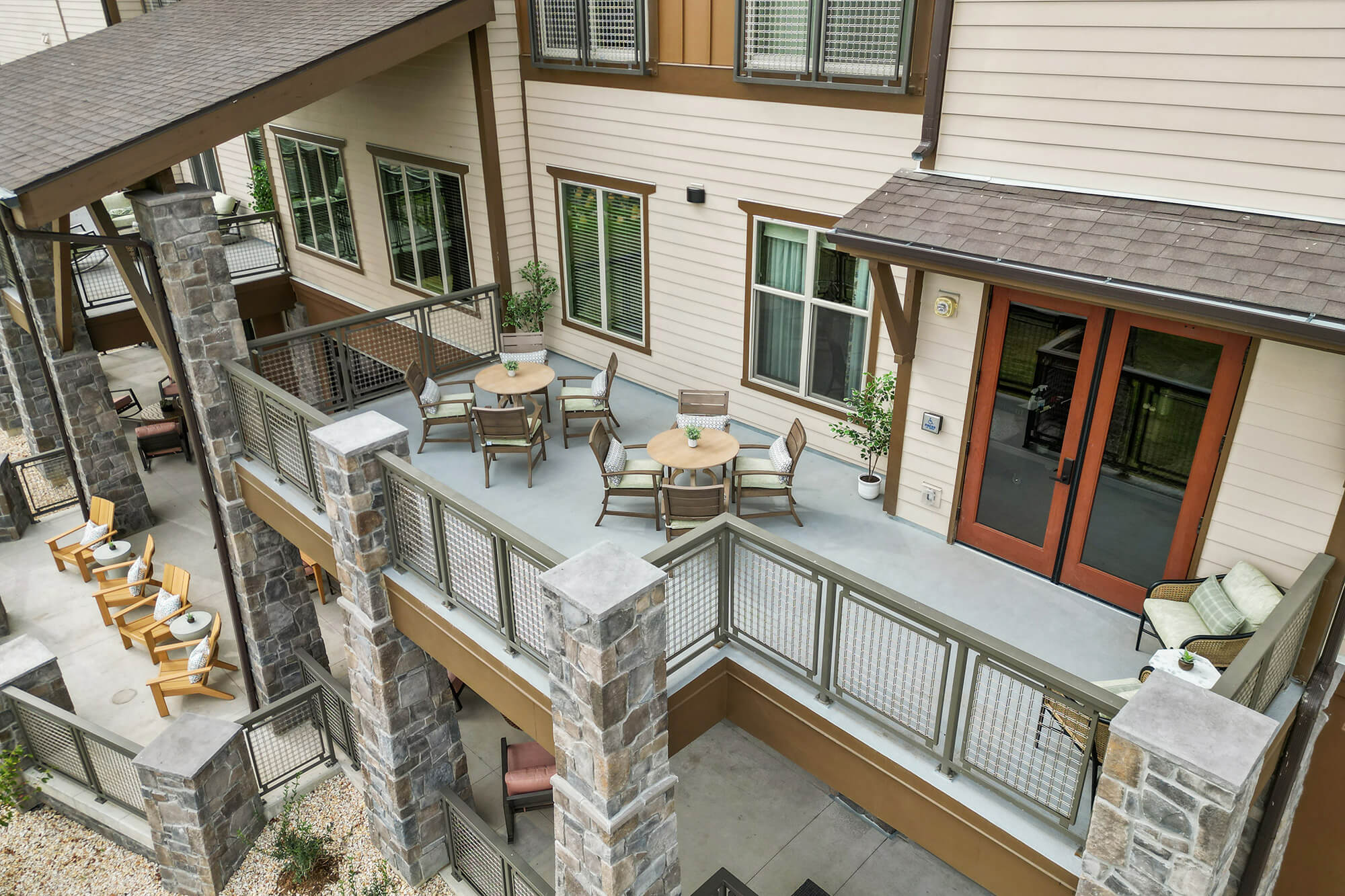 Our expansive grounds offer community lounges and patios that encourage our residents to gather and enjoy the outdoors for a meal or game of cornhole. Inside and out, our spaces are designed to be both beautiful and functional—with places designated for relaxing, socializing, exercising, dining, learning and more.