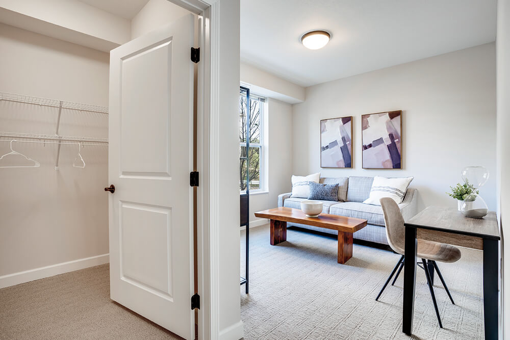 Amira Roseville’s 55+ active adult living floor plans include studio, one-, two- and three-bedroom layouts. Your new pet-friendly home will feature a spacious layout with 9-foot-high ceilings, large windows to maximize natural light, luxury vinyl plank flooring and premium fixtures and finishes. Upscale kitchens boast quartz countertops, tile backsplashes, under-cabinet lighting and stainless-steel appliances. With modern designs, many of which feature islands, these kitchens will serve as the hub of the home, perfect for entertaining friends and neighbors.